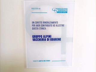 Si tratta di un ringraziamento della 'Fondazione Ospedale Alba-Bra Onlus' al Gruppo Alpini Vaccheria di Guarene che nel 2016, su impulso dell’allora capogruppo Pierluigi Rebuffi, raccolse e donò al nosocomio albese ben 25.000 euro, aderendo al progetto “Adotta una stanza”.