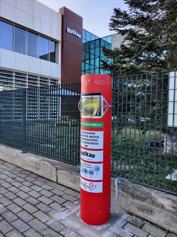 La postazione salvavita pubblica si trova in via Alcide De Gasperi 2, di fronte a uno degli ingressi della Nutkao, con defibrillatore estraibile e dotato delle relative istruzioni.
