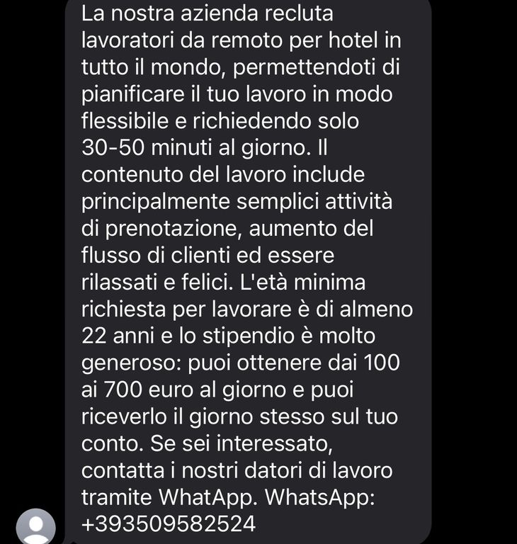 Un sms normale o su whatsapp, ma anche una mail. L’offerta è sempre più o meno la stessa: un impiego di lavoro da remoto di poche ore al giorno a fronte di uno stipendio davvero accattivante.