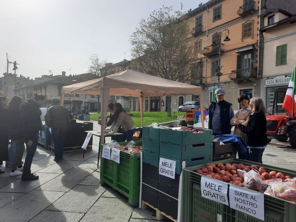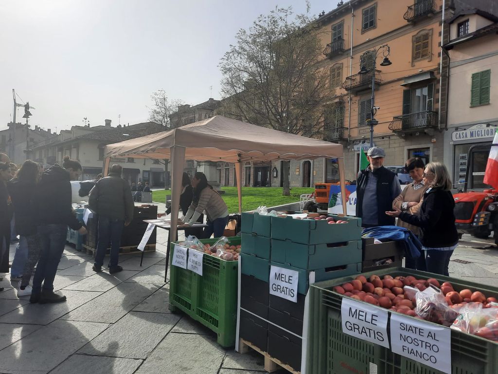 La novità saluzzese è stata quella di una postazione allestita nell’area pedonale di corso Italia, davanti alla statua di Silvio Pellico, dove le mele contenute in alcuni cassoni donati dalle organizzazioni dei produttori sono state regalate ai passanti. “In segno di protesta - spiega Davide Barale, uno dei portavoce dell'associazione per il Saluzzese -. Oggi a Saluzzo c’è stata un'adesione importante con una risposta positiva dei cittadini a questa iniziativa. Non solo prendendo la frutta che abbiamo distribuito, ma mettendo la propria firma per sostenerci e difendere il made in Italy, che non deve essere solo una parola vuota. Al momento siamo intorno alle 500 firme. C’è troppa differenza tra il prezzo di acquisto della frutta al supermercato e il costo di produzione della stessa: si produce sottocosto e il consumatore finale paga dieci volte tanto il prezzo dato al produttore”.