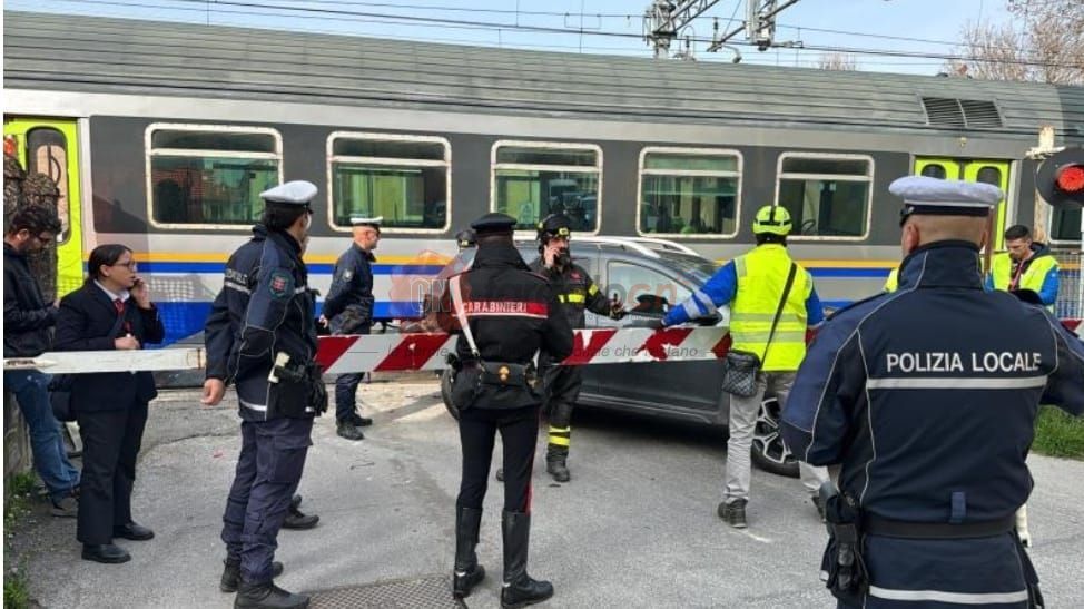 Bloccati con l’auto nel passaggio a livello: il treno li travolge, salvi per miracolo