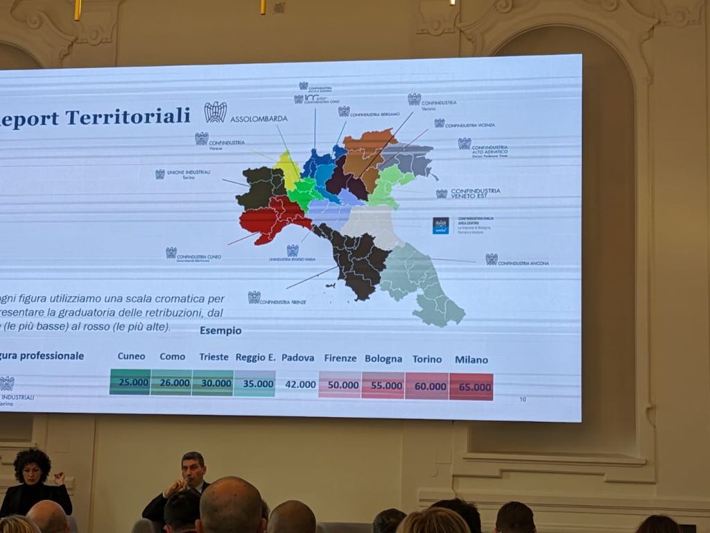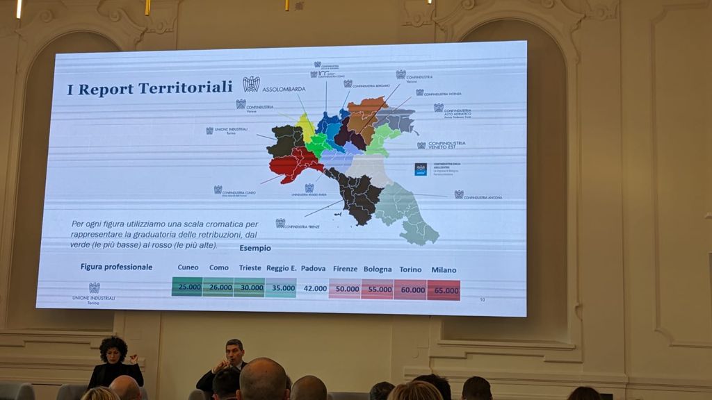 “Parliamo di una iniziativa di Sistema a cui aderiscono 19 territoriali del Nord e del Centro – spiega Angaramo -: un'indagine che monitora gli stipendi nelle singole aree e analizza i differenziali territoriali in funzione di 5 diverse causali. Sono coinvolte oltre 1.000 aziende, 100.000 dipendenti e 85mila dati retributivi. In Granda sono quasi 100 le aziende che partecipano. Sono 60 le mansioni analizzate, di cui nove con competenze digitali”.