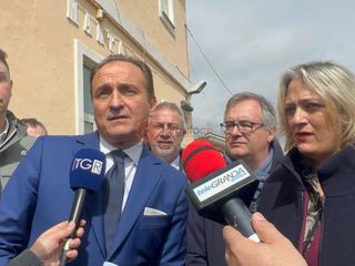Il presidente della Regione Alberto Cirio mostra il testo della determina: "Per far andare i treni servono le rotaie e i treni. Le rotaie saranno interessate da interventi di RFI per 70 milioni di euro complessivi, 40 qui e 30 sulla Ceva-Ormea, per rendere idonea la strada ferrata. Quello che mancava era chi mettesse i treni. Trenitalia non aveva interesse per queste tratte. Abbiamo attivato una ricerca di mercato e verificato nel mondo se c'erano vettori disponibili e a che prezzo. Questa è Longitude, che ha fatto un'offerta. C'è stato un ricorso di Trenitalia, respinto. E abbiamo proceduto con l'aggiudicazione. Io ho in mano la determina firmata dal direttore generale dell'Agenzia della Mobilità che aggiudica il servizio alla Longitude di Torino".