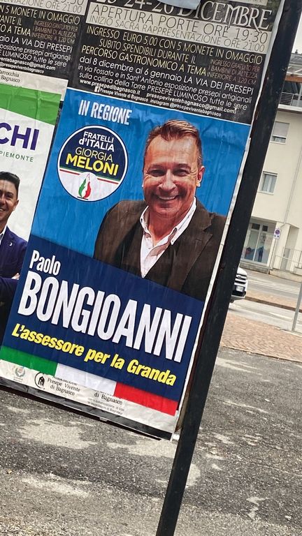 È il caso di Paolo Bongioanni, capogruppo in Consiglio regionale e vicesegretario piemontese di Fratelli d’Italia, il quale ha tappezzato varie città della provincia con lo slogan “Bongioanni, l’assessore per la Granda”.