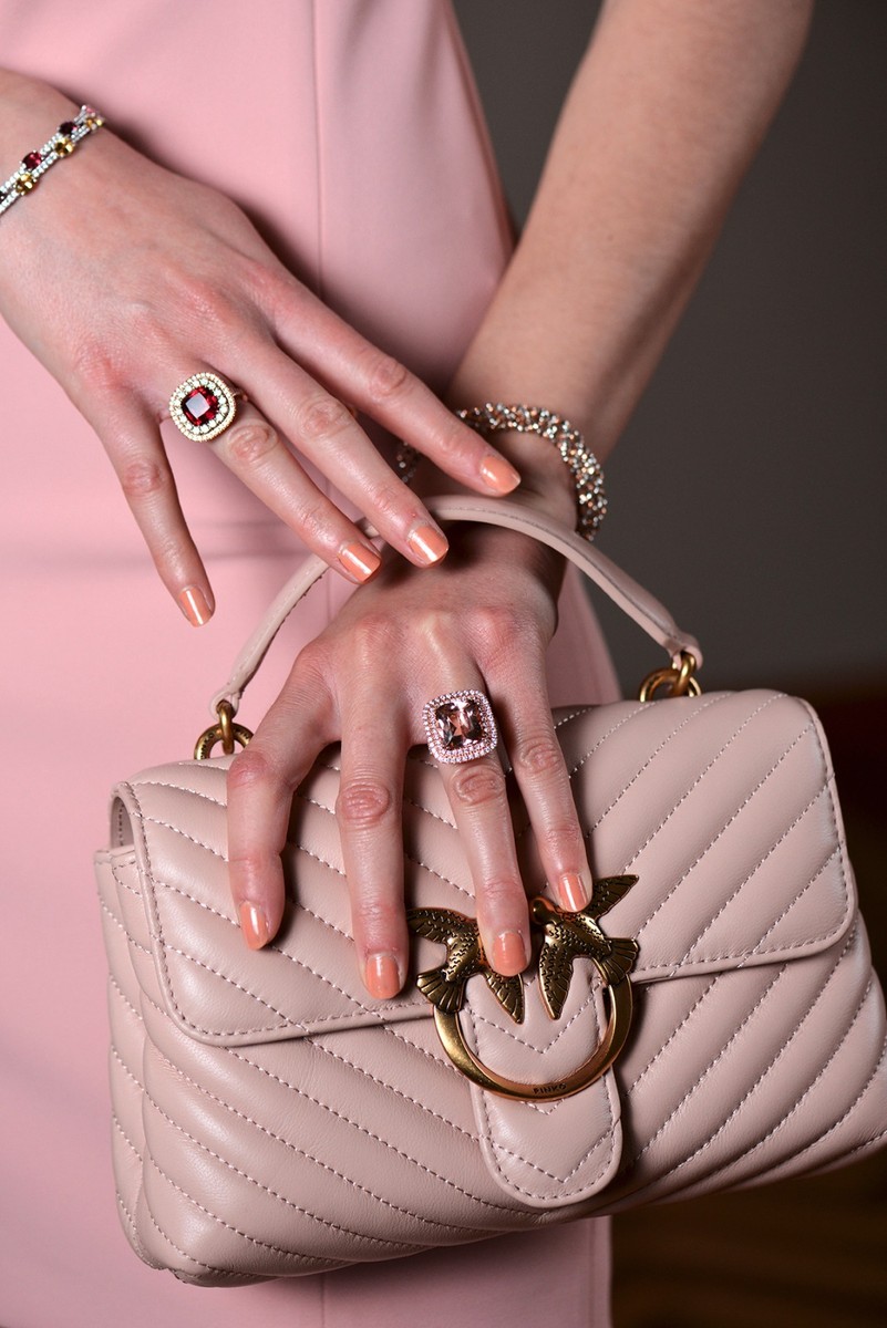 Indubbiamente protagonisti indiscussi sono sempre i diamanti e le pietre preziose come smeraldi zaffiri e rubini ma oggi, a queste, si annovera una vastissima gamma di gemme rare e meno conosciute. Io amo in modo particolare i diamanti che evocano durevolezza e luce ma ho scelto come firma delle mie creazioni lo zaffiro che viene incassato come simbolo di unione, fede ed eternità. Il blu dello zaffiro diventa sigillo ispirandosi a leggende e miti di un passato senza tempo.