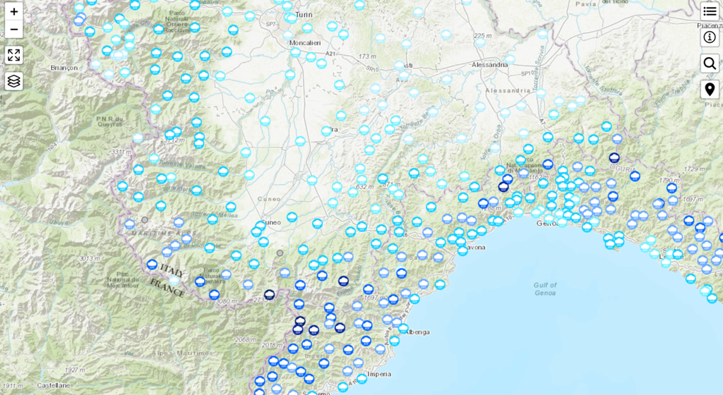 Nel Cuneese i quantitativi sono stati inferiori con i pluviometri di Limone Pancani e Piaggia più rilevanti, con circa 130 mm nelle ultime 24 ore.