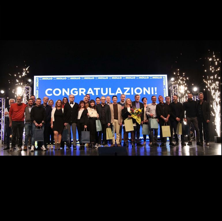 Si è svolta ad Alba la 13ª Convention del Gruppo Mollo, un’occasione per fare il punto sulla crescita aziendale e sottolineare i valori che da sempre contraddistinguono la “grande squadra” dell'azienda albese. Collaboratori, istituzioni – in primis il presidente della Regione Piemonte Alberto Cirio e il sindaco di Alba Carlo Bo – giornalisti, consulenti, associazioni, imprenditori del territorio: in tanti sono giunti al Teatro Sociale di Alba per partecipare all’evento annuale del Gruppo, occasione per presentare i numeri e le strategie che fanno dell’azienda guidata da Mauro e Roberto Mollo una eccellenza italiana. Alla convention non è mancato il divertimento, con lo spettacolo del duo comico Ale & Franz.