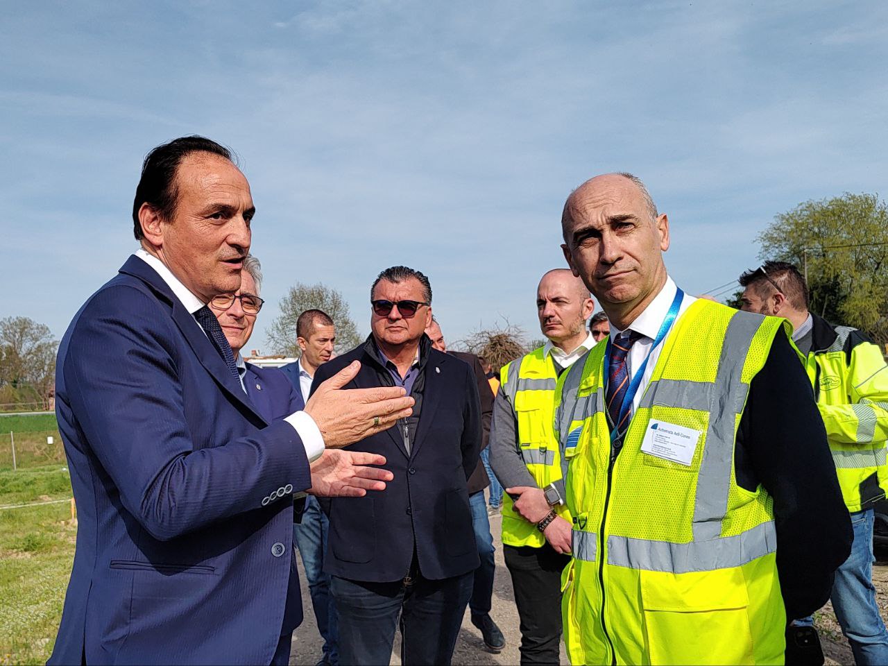 Nel pomeriggio di oggi, 5 aprile, il presidente della Regione Piemonte Alberto Cirio si è recato in visita al cantiere con l’assessore regionale ai trasporti, infrastrutture e opere pubbliche Marco Gabusi, il sindaco di Verduno Marta Giovannini e il sindaco di Alba Carlo Bo, proprio nella parte iniziale dell’ultimo tratto autostradale, dove sorgerà una delle opere più discusse.