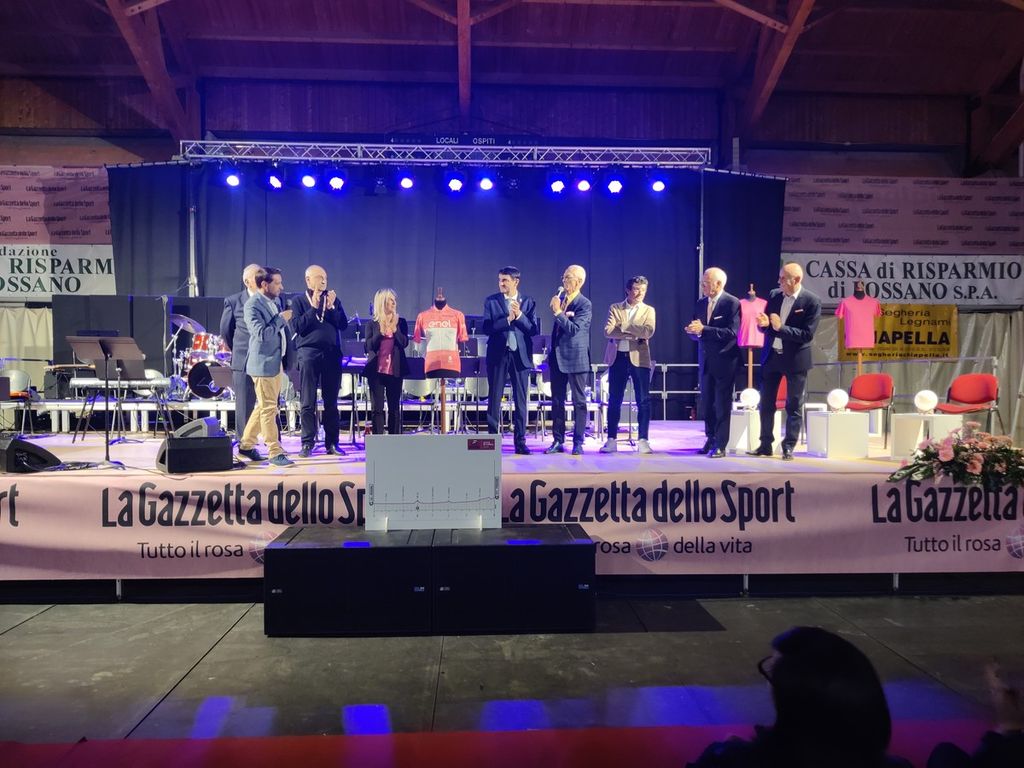 Il Sindaco Tallone, presente alla serata, nonostante il grave lutto subito nel pomeriggio, ha ringraziato il folto pubblico: "Tanti comuni ambivano ad ospitare l'arrivo del Giro, ma grazie soprattutto al Senatore Giorgio Bergesio, che già molti mesi fa mi suggeriva di puntare sulla grande occasione, Fossano c'è l'ha fatta. Grazie anche a chi ha allestito questa sala, e principalmente grazie all Professor Brignone, direttore della Fondazione Fossano Musica."