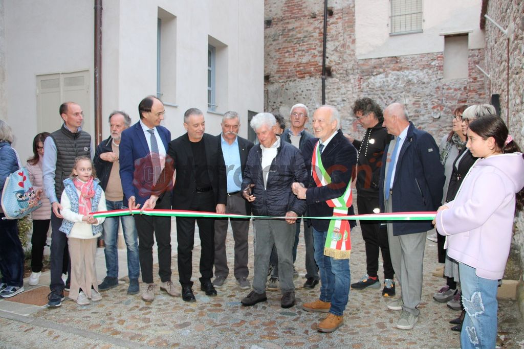 Con la preghiera di don Antonio Calandri è stata inaugurata ufficialmente la piazza che ricorderà per sempre l'incendio di Piozzo e il fotografo della époque Lartigue.