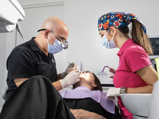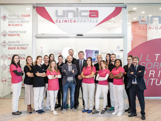 "Siamo una grande squadra che al suo interno conta Receptionist, Assistenti alla poltrona, Igienisti dentali, personale amministrativo, Medici Odontoiatri e specialisti in Ortognatodonzia, oltre alle collaborazioni con i nostri laboratori odontotecnici di riferimento. Come dicevo prima, la dimensione familiare per noi è molto importante, così come il rapporto diretto e di fiducia con i pazienti. Per questi motivi in ognuna delle tre sedi c'è un team di professionisti fisso, solo in alcuni casi, quando vi è necessità di consulenze specialistiche alcuni medici operano in più sedi. Questo garantisce continuità e stabilità.