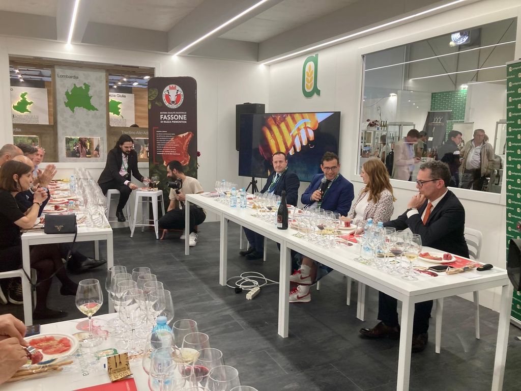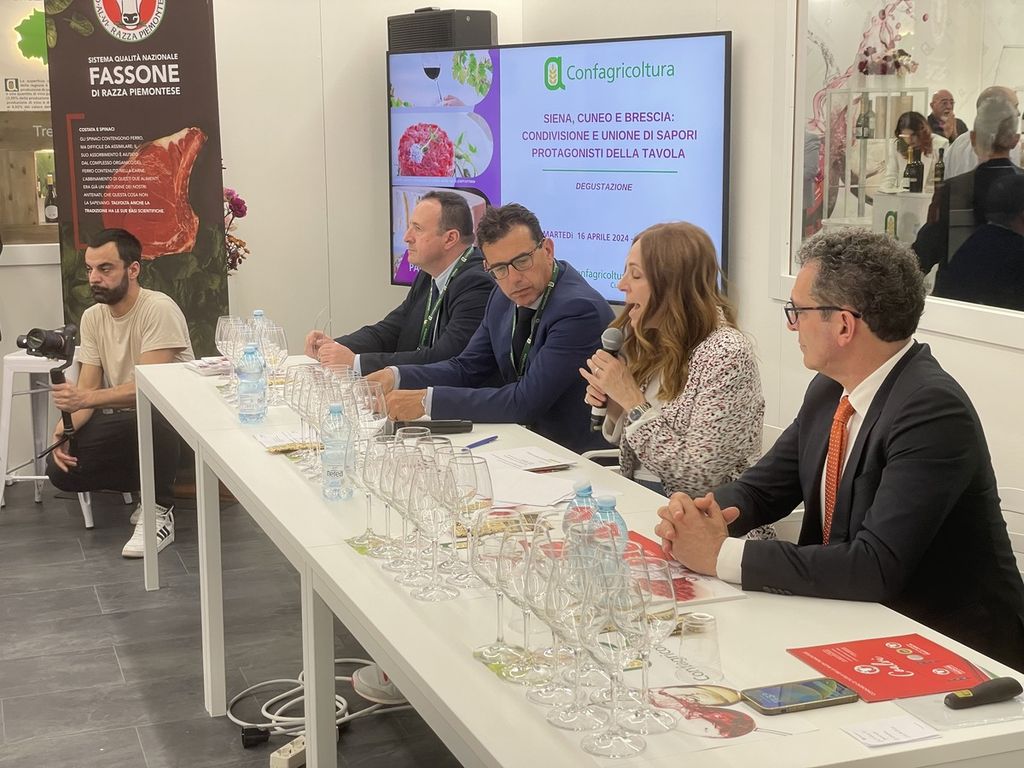 “Con questo nuovo appuntamento offriamo al pubblico un percorso enogastronomico per far conoscere la nostra terra e le nostre tradizioni e quest’anno abbiamo pensato all’agricoltura eroica cuneese, mettendo insieme tre vini che testimoniano come il comparto primario, malgrado le difficoltà, riesca a dar vita ad eccellenze riconosciute. In particolare, proponiamo il Dolcetto che nasce su terrazzamenti in pietra, la Barbera su una pendenza superiore al 40% e l’Alta Langa che vive al limite della zona della Langa con investimenti e produzioni molto importanti. Non potevamo non abbinare a questi vini eroici, tre piatti a base di carne bovina di razza Piemontese, in buona parte proveniente da allevamenti che svolgono ancora la pratica della transumanza sugli alpeggi delle nostre montagne, con condizioni di lavoro tutt’altro che semplici”. Con queste parole Roberto Abellonio, direttore di Confagricoltura Cuneo, martedì 16 aprile al Vinitaly di Verona ha dato il via all’evento “Siena, Cuneo e Brescia: condivisione e unione di sapori. I protagonisti della tavola”, organizzato da Confagricoltura Cuneo, Confagricoltura Brescia e Unione Provinciale Agricoltori di Siena, presso lo stand di Confagricoltura.