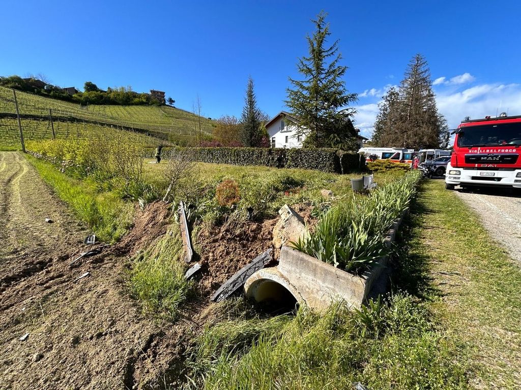 In corrispondenza di una curva sulla provinciale che attraversa Val Rubiagno l’uscita di strada e l’impatto diversi metri oltre la cinta dell’abitazione. Un ferito elitrasportato al S. Croce di Cuneo in gravi condizioni, un quarto passeggero portato al Dea di Verduno