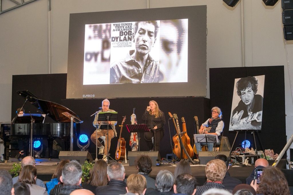 Lo spettacolo “Un uomo chiamato Bob Dylan” ha visto sul palco il noto giornalista musicale Ezio Guaitamacchi e i bravissimi musicisti Davide Van De Sfroos, Andrea Mirò e Brunella Boschetti.