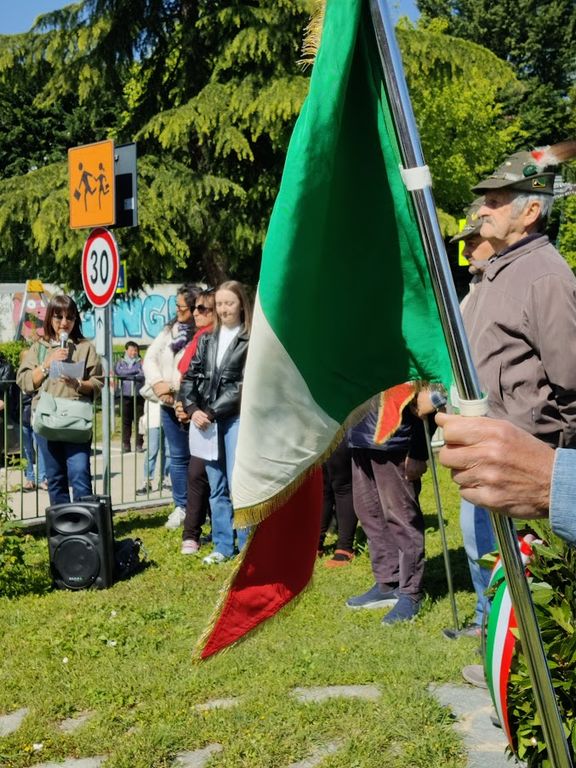 Dopo l’alzabandiera e il Silenzio sono stati letti alcuni brani tratti da testimonianze di donne operanti nel periodo della resistenza e deposta una corona di alloro.