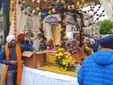 Il corteo che ha attraversato le strade del centro della città era accompagnato da canti devozionali (shabad) e dal suono melodioso di strumenti tradizionali l'harmonium e il dhol.