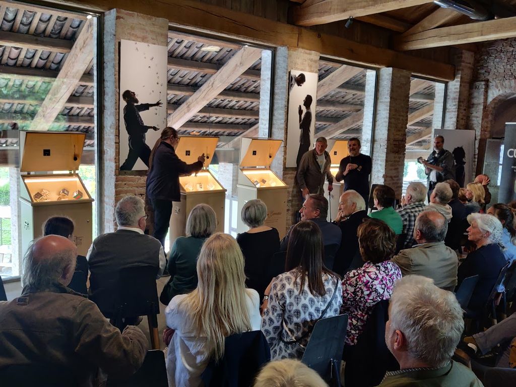 “L’imprevedibilità delle bocce quadre è simile all’attività dell’imprenditore” ha chiosato durante i saluti Teo Musso. Fabrizio Lanza e Filippo Bessone hanno sottolineato come il progetto artistico, peraltro già esposto al Museo della Ceramica di Mondovì mesi fa, si sta evolvendo e si evolverà ancora. “I bauli consentono il trasporto in sicurezza delle opere e per un’attività o un luogo sono un valore aggiunto. Non sappiamo esattamente che itinerario faranno, sono bocce quadre d’altronde, hanno traiettorie imprevedibili…” hanno dichiarato.