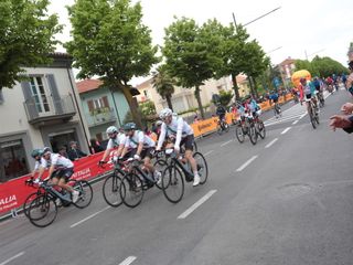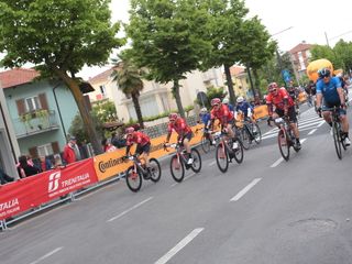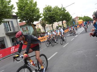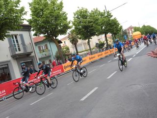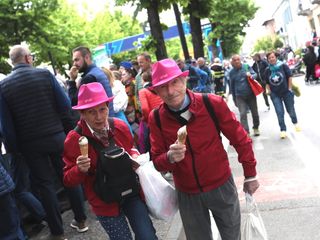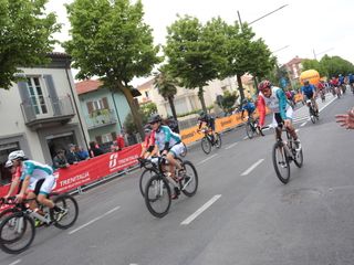 Aspettando l'arrivo dei protagonisti del Giro Fossano ha rivolto i suoi applausi ai corridori del GiroE, al termine della frazione partita da Cherasco.