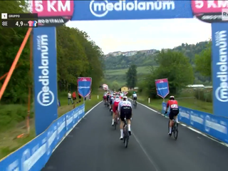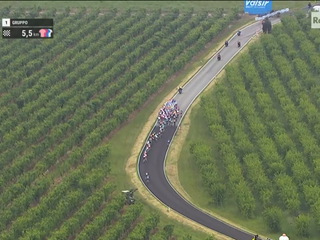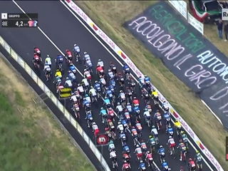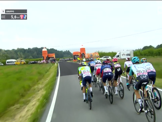 Dopo il suo ingresso in Granda a Canove di Govone, il gruppo aveva recuperato il suo svantaggio sulla compagine di 26 fuggitivi che aveva cercato l’allungo all’altezza di Masio, nell’Alessandrino, proseguendo poi lungo la Statale 231 e la Provinciale 7 attraverso i territori di Castagnito, Guarene, Santa Vittoria d’Alba, Pollenzo di Bra, Cherasco (sprint intermedio appannaggio di Swift, mentre Pogacar con una mini volata è secondo e guadagna 2" in classifica generale) e Salmour.