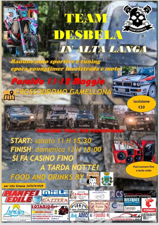 L'evento, organizzato dall'ASD Team Desbela di Roccaforte Mondovì, si svolgerà presso il crossodromo "la Gamellona". Esposizione di auto, possibilità di far suonare gli impianti delle auto fino a tarda notte e un percorso trial per i fuoristrada.