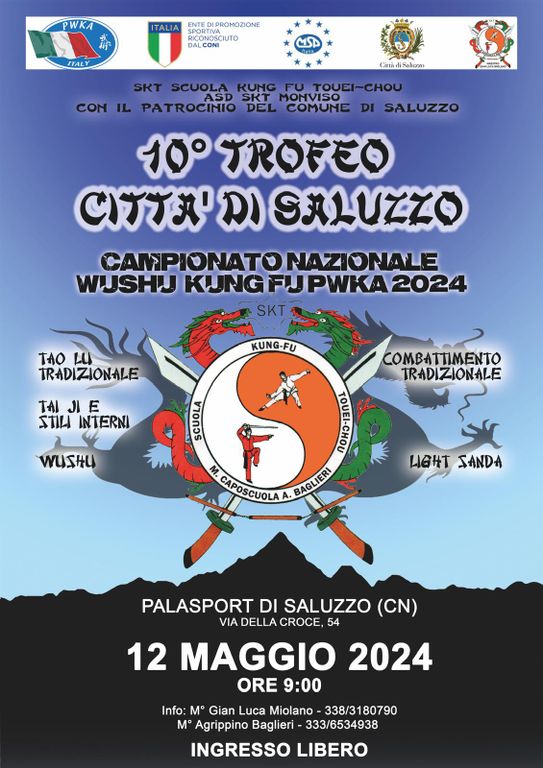 Domenica 12 maggio 120 atleti provenienti da diverse scuole del Nord Italia, tra cui la ASD SKT Monviso di Saluzzo, si daranno battaglia nelle varie categorie di Kung Fu (sia forme che combattimento) presso il palazzetto dello sport di Saluzzo in via della Croce, nel decimo Trofeo Città di Saluzzo.