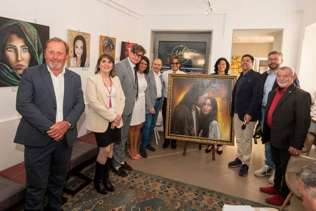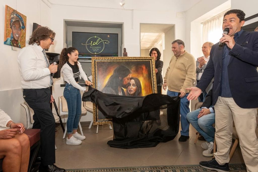 Nel corso del vernissage della mostra “Volti nel tempo” di Riccardo Testa, è stato presentato l’ultimo capolavoro del pittore braidese dal titolo: “Il bacio… di Gesù”, parola dolce che fa bruciare gli innamorati, «Apostrofo rosa fra le parole t’amo».