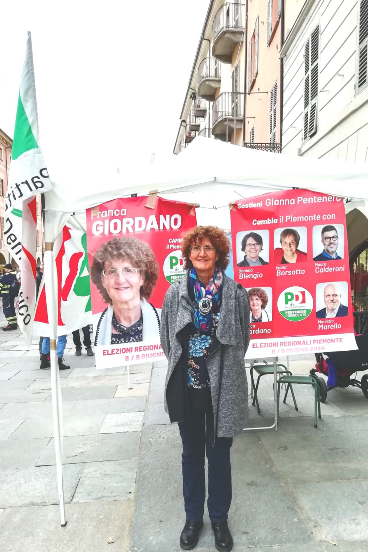 Franca Giordano, 69 anni, è candidata al consiglio regionale del Piemonte con il Partito Democratico, al fianco di Gianna Pentenero, candidata alla presidenza.