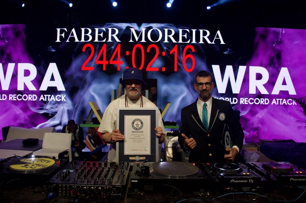 E se l’urlo del popolo della notte è stato elettrizzante appena stoppato il cronometro, il tributo di fronte alla consegna della certificazione è stato incredibile: desiderato, sperato e oggettivamente difficile da raggiungere, il record di maratona dj alla consolle è un risultato epico, che inserisce di diritto Moreira nella storia della musica oltre che nel libro dei record.