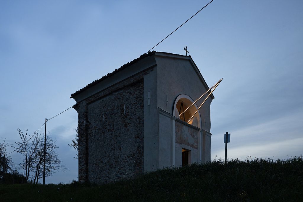 Ad inaugurare il progetto, sabato 8 giugno 2024 sarà MIRACLE dell’artista Emilio Ferro, un’installazione permanente ideata per la Cappella di San Rocco, situata lungo la via che porta al celebre Santuario di Vicoforte. L’opera si compone di una struttura metallica di luce di oltre 18 metri che attraversa lo spazio della cappella, indicando la via verso il Santuario, e di una registrazione sonora, creata dall’artista grazie al mescolamento delle vibrazioni dei campi magnetici della cappella e del Santuario, insieme con campioni di suoni provenienti dal paesaggio circostante.