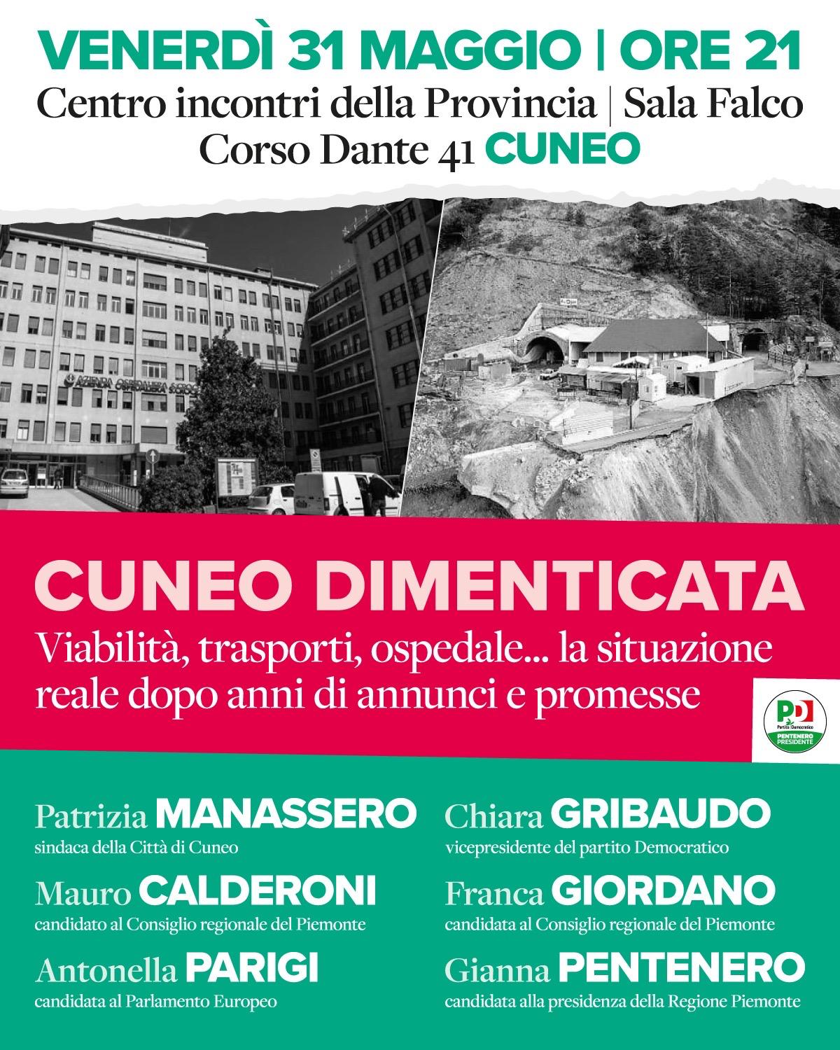 Il 31/5 alle 21 a Cuneo presso la sala Falco della provincia rifletteremo sullo stato delle infrastrutture e dei servizi pubblici nella Granda insieme a Chiara Gribaudo, Patrizia Manassero e Gianna Pentenero e presenteremo le nostre proposte, provando a dare un contributo costruttivo.
