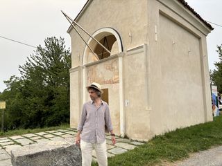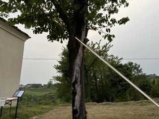 "Le cappelle come quella di San Rocco, disseminate sul territorio del Monregalese, costituivano anticamente una sorta di mappa che i pellegrini diretti al Santuario di Vicoforte utilizzavano come punti di riferimento nel loro itinerario. - ha spiegato Emilio Ferro - "Intorno al XVII secolo, migliaia di fedeli affrontavano viaggi lunghi e difficili per raggiungere questo luogo di culto, diventato celebre per i numerosi miracoli e la cui importanza era paragonabile ai moderni santuari di Lourdes e Medjugorje. La ricerca spirituale, accompagnata alla speranza di assistere a un miracolo, conferiva a questo viaggio un significato profondo e simbolico. Allo stesso modo, oggi, il pellegrino contemporaneo intraprende il cammino nella natura e nell'arte alla ricerca di sensazioni extra-ordinarie, di radicamento, ma anche di scoperta e elevazione. Un'esperienza profondamente trasformativa. Quando, nel 2022, ho visitato la cappella, c'era un ciliegio selvatico, completamente bruciato, dominava l'atmosfera con la sua ombra senza vita. Tuttavia, sebbene l'albero sembrasse destinato a rimanere spoglio e scorticato, durante i preparativi per l'installazione nel 2024, si è verificato un sorprendente cambiamento: timide gemme sono germogliate e ora la pianta ha rigogliose foglie verdi".