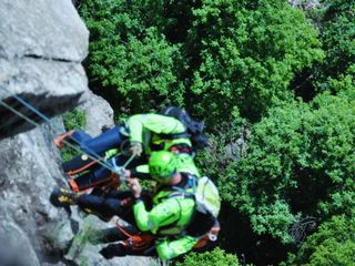 Oltre sessanta tecnici del Soccorso Alpino e Speleologico Piemontese della provincia di Cuneo hanno partecipato a un addestramento ai piedi della Rocca Sbarua nel torinese.