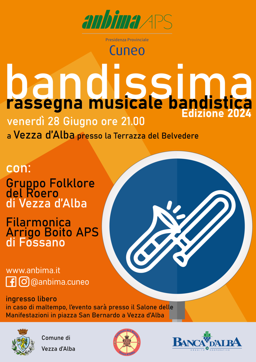 Ecco quindi scaturire gli appuntamenti di "BANDISSIMA”, che interesserà due zone della Provincia di Cuneo: Vezza d’Alba il 28 giugno e Demonte il 22 settembre.