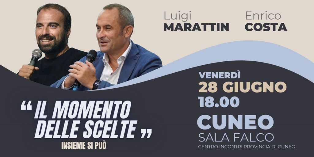 Riparte da Cuneo – venerdì 28 giugno alle ore 18 presso la Sala Falco del Centro Incontri della Provincia – il ciclo di incontri che Luigi Marattin, deputato di Italia Viva, ed Enrico Costa, deputato di Azione, hanno lanciato nel 2023 e che ha toccato già molti capoluoghi di provincia.