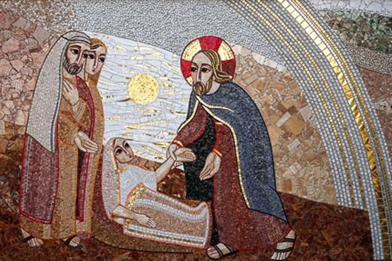 Giunsero alla casa del capo della sinagoga ed egli vide trambusto e gente che piangeva e urlava forte. Entrato, disse loro: «Perché vi agitate e piangete? La bambina non è morta, ma dorme». E lo deridevano. Ma egli, cacciati tutti fuori, prese con sé il padre e la madre della bambina e quelli che erano con lui ed entrò dove era la bambina. Prese la mano della bambina e le disse: «Talità kum», che significa: «Fanciulla, io ti dico: àlzati!». E subito la fanciulla si alzò e camminava; aveva infatti dodici anni. Essi furono presi da grande stupore. E raccomandò loro con insistenza che nessuno venisse a saperlo e disse di darle da mangiare (Mc 5,21-43).
