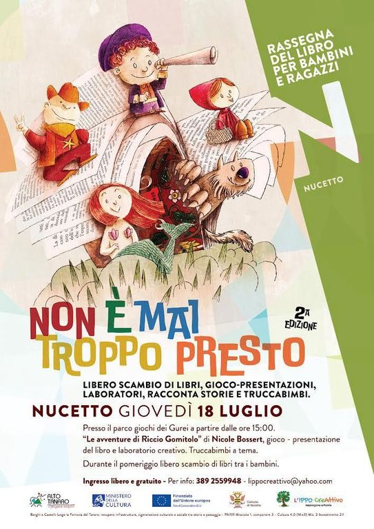 Dopo il successo ottenuto a Bagnasco lo scorso 11 luglio, torna “Non è mai troppo presto”, la rassegna del libro per bambini e ragazzi in Alto Tanaro, giunta alla seconda edizione che, anche quest’anno, ospiterà a Bagnasco, Nucetto e Ormea laboratori, racconta storie, presentazioni di libri e non solo.