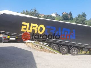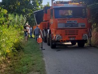 Disavventura per un tir che questo pomeriggio, lunedì 5 agosto, doveva scaricare del materiale in un'azienda di Vezza d'Alba.