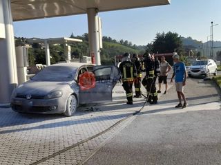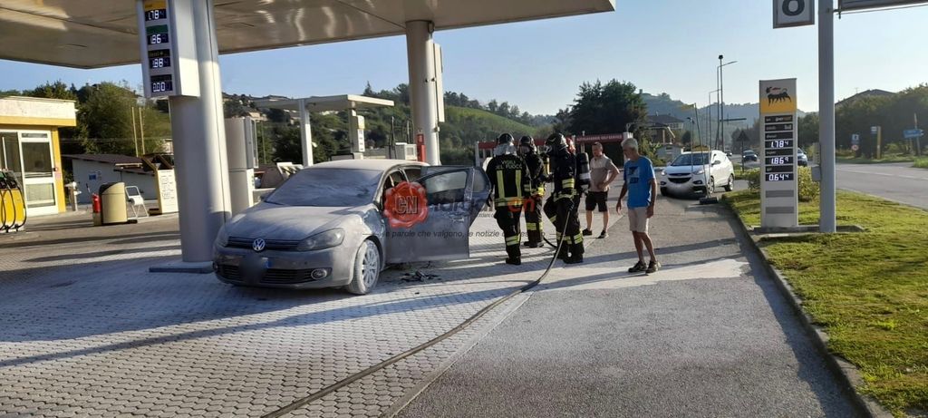 Incendio di una vettura al distributore di carburanti Eni Agip in Regione Casino a Vezza d'Alba. Una Golf, ferma a fare rifornimento, poco prima delle 8 di stamattina 14 agosto ha improvvisamente preso fuoco.