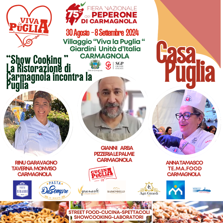 Show Cooking La Cucina Pugliese incontra il Peperone di Carmagnola e la ristorazione di Carmagnola :