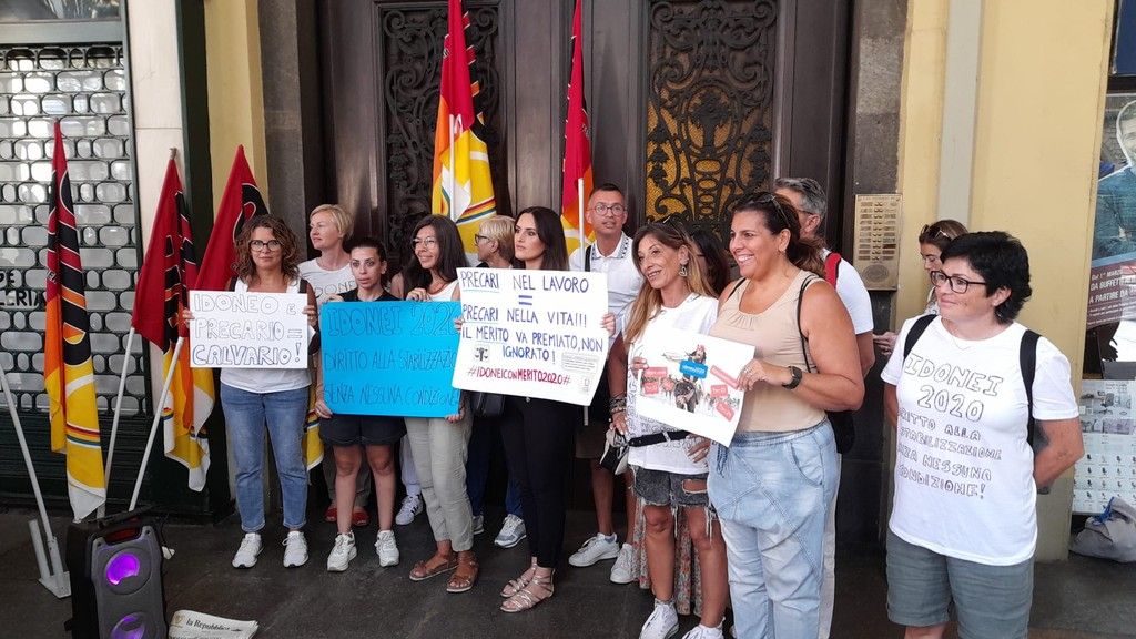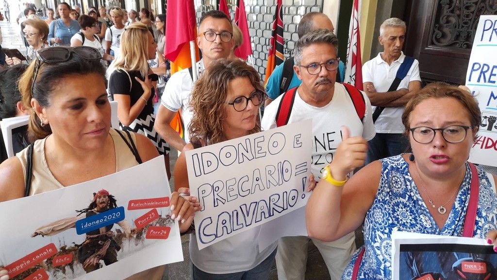 "Ogni estate per noi è un calvario. Ci arrivano notizie frammentarie, spesso sbagliate. E siamo sempre nel limbo, pur lavorando". È solo una delle voci delle decine di persone che questa mattina si sono trovate sotto le finestre dell'ufficio scolastico regionale, a pochi giorni dalla prima campanella.