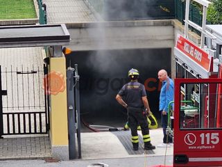 Fumo da un'autorimessa in via dei Boschi a Borgo San Dalmazzo, auto in fiamme