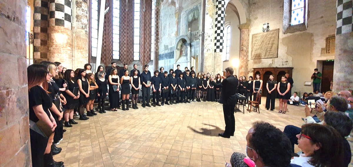 [Sopra il coro del Liceo Musicale in un'immagine d'archivio]