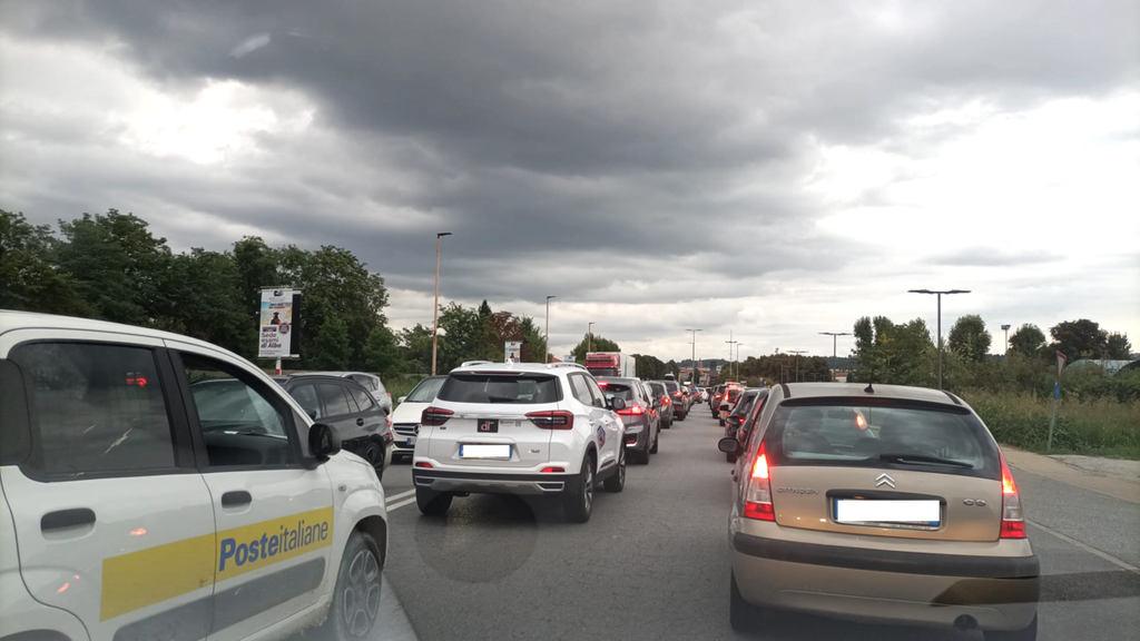Momenti di passione in uscita ed entrata da Alba nel tardo pomeriggio di oggi, mercoledì 11 settembre, attraverso la direttrice della rotonda "della vigna" e della tangenziale.