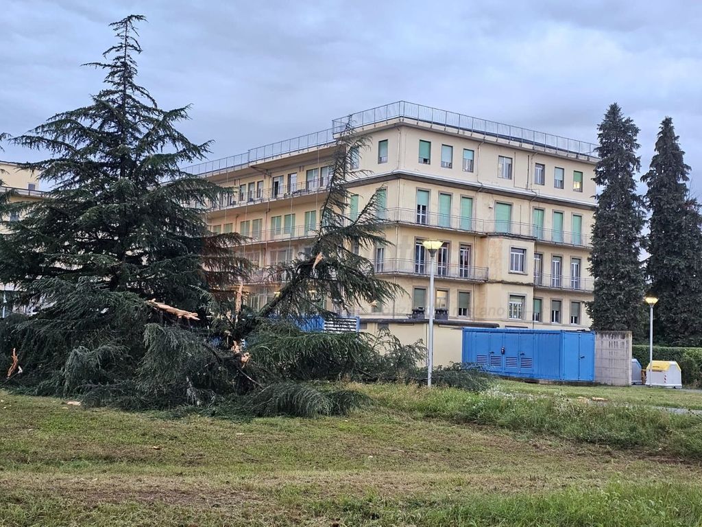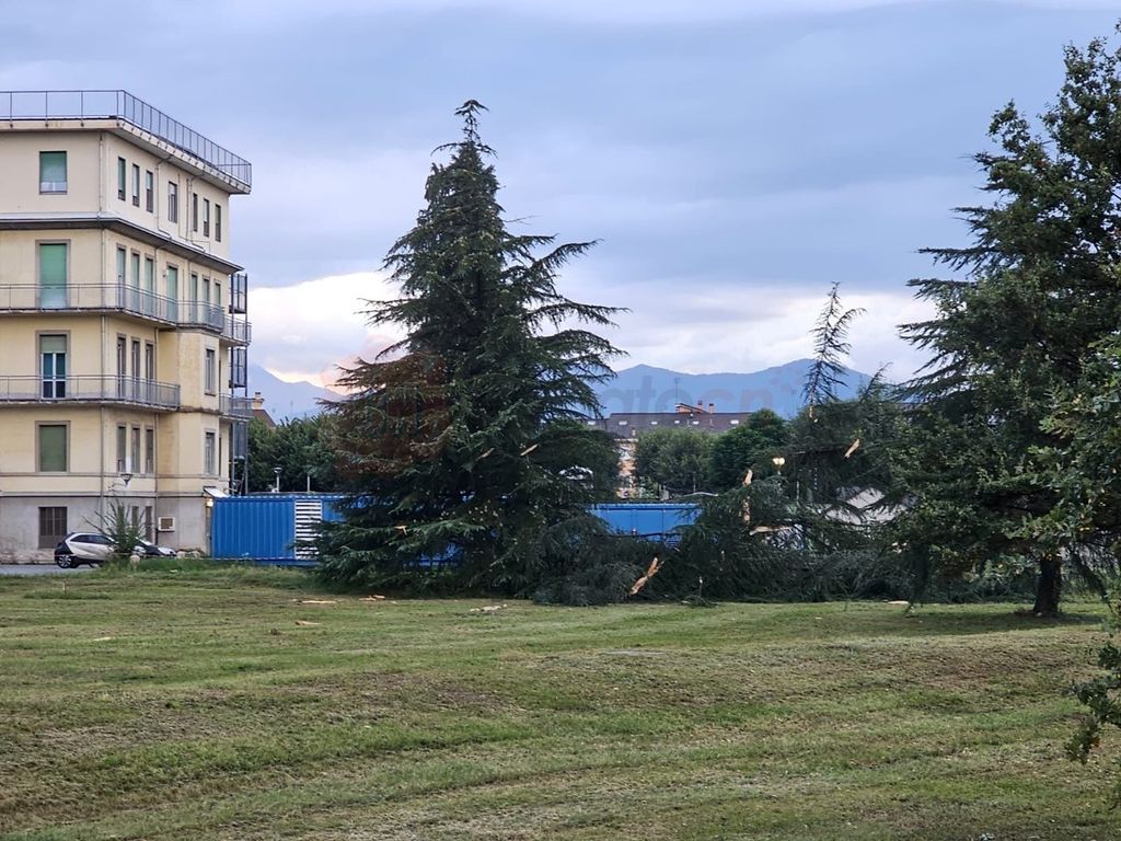 Temporale abbatte pianta nel parco dell’ospedale Carle di Cuneo