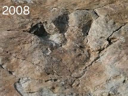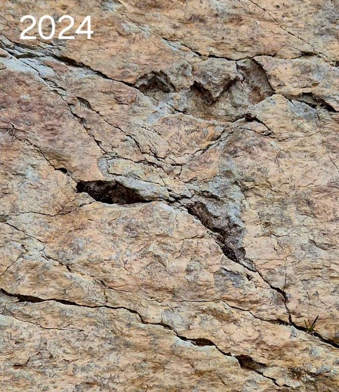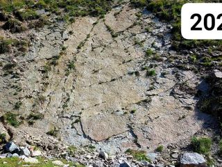 Così come quelle del 2008 (scoperte con l'Università di Genova) stanno sgretolandosi anche le impronte scoperte (grazie all'associazione Escarton, che ha coinvolto il Museo dei Fossili di Bernezzo e l'Università di Torino, Università di Genova e Zurigo che avevano aiutato nei primi lavori di riconoscimento delle impronte, la Sapienza di Roma, la Società Geologica Italiana, il Museo di Scienze Naturali di Trento) nel recente 2017.