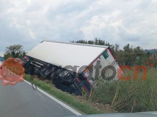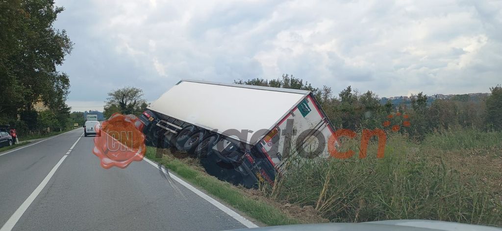 Autoarticolato frigo uscito fuori strada sulla strada provinciale 7 nel Comune di Bra tra Cherasco e Pollenzo.