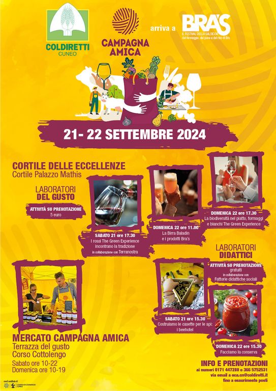 Il prossimo weekend a Bra, le eccellenze agroalimentari a Km zero saranno al centro della proposta di eventi firmati Coldiretti Campagna Amica nell’ambito di Bra’s, il festival della salsiccia, del formaggio, del pane e del riso di Bra.
