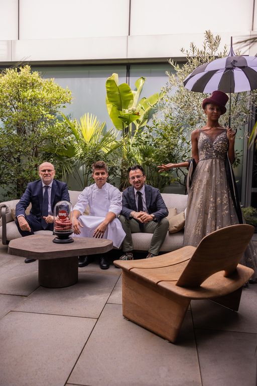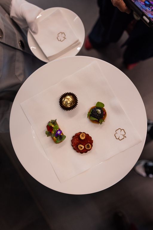 A Milano Boglioli ha preparato per giornalisti e autorità una vera e propria prelibatezza, il “Rocher piemontese” con salsiccia di Bra, tartare di manzo piemontese con foie gras, lardo di maiale, con spezie dolci, in foglia d’oro, da mangiare in un solo boccone.