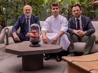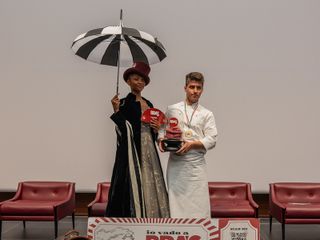 A Milano Boglioli ha preparato per giornalisti e autorità una vera e propria prelibatezza, il “Rocher piemontese” con salsiccia di Bra, tartare di manzo piemontese con foie gras, lardo di maiale, con spezie dolci, in foglia d’oro, da mangiare in un solo boccone.