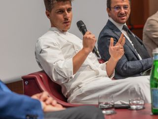 Durante l’anteprima milanese il giovane chef ha illustrato quelle che saranno le sue proposte intervistato dal giornalista Marcello Pasquero. Insieme a lui Luigi Barbero, direttore dell’Ascom Bra, che organizza la manifestazione gastronomica col sostegno del Comune, rappresentato dall’assessore Luciano Messa. Poi Enrico Stoppani, presidente nazionale Fipe Confcommercio, e il presidente dell’Associazione Macellai di Milano Monza e Brianza Giorgio Pellegrini.